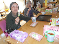 ひな祭りを行いました。お雛様の作品作りでは、台紙に桃の花を思い思いに貼られ「にぎやかになったね」と笑顔が見られました。